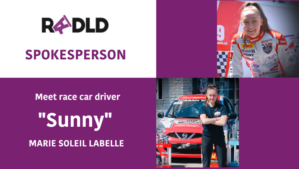 Québec (CA) Pilote automobile et bilingue français-anglais, Marie-Soleil Labelle est affectueusement surnommée « Sunny ». RADLD est ravi d'annoncer que Sunny nous a rejoints en tant que première porte-parole officielle. Sunny souffre d'un trouble du développement...
